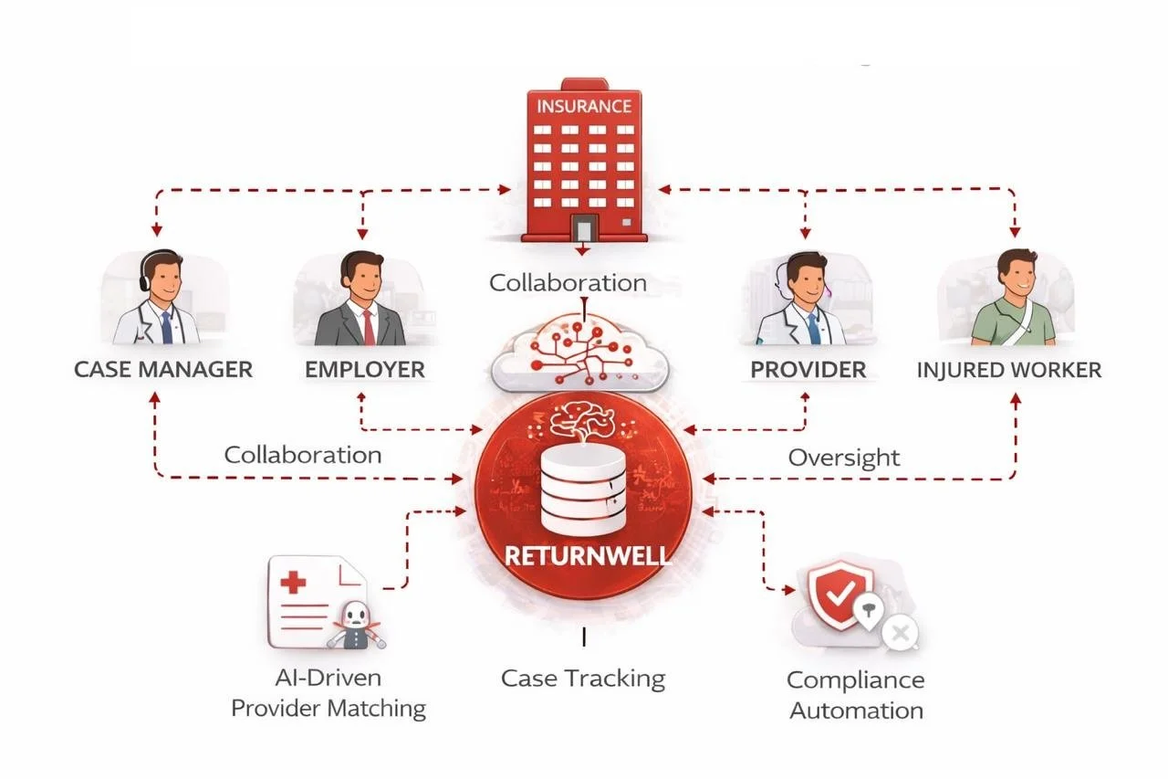 ReturnWell was founded by practising physiotherapists Mohamed Elmasri and Kenan Manasirli, who initially set out to create a better software for managing WC/CTP cases within their own clinics. Through this process, they identified that the real constraint on outcomes was not simply clinical capability, but fragmented data, disconnected workflows and compartmentalisation across stakeholders.